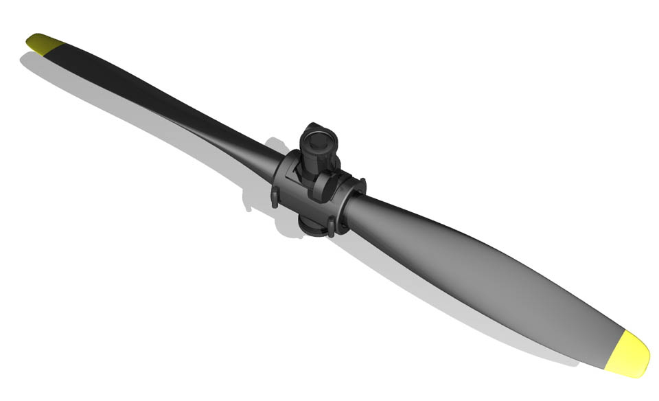 PropellerOne of the students modeled propeller with Rhinoceros based on the real one. The left image is made from his model and ray-traced with POV-Ray by the author. |