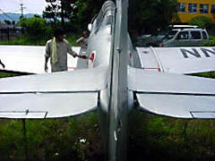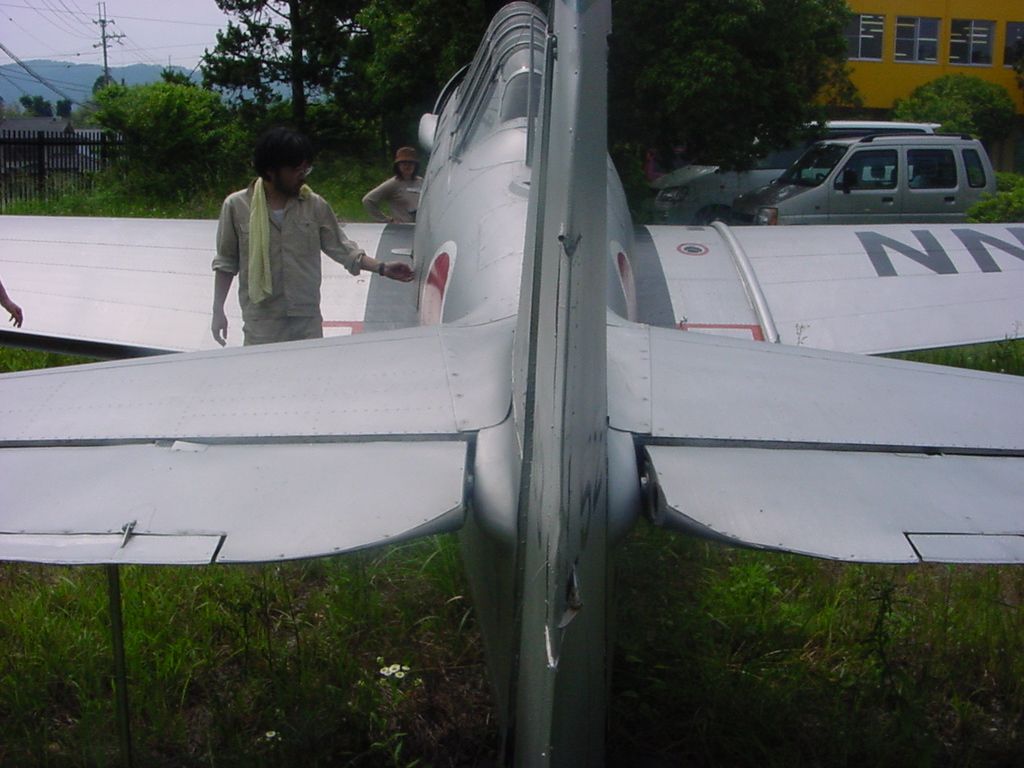 OverviewThe painted number, 52-0083 (S/N) and 083 (radio call number) are the originals. NNCT, newly painted on the top of right wing, is the abbreviation for Nara National College of Technology (our college).Unfortunately, all of its control surfaces, e.g. aileron, are not functioning due to broken wires. The rear view shows the dihedral angle (It is said that is 5˚41´) and slightly tilted (1˚45´) vertical stabilizer. |