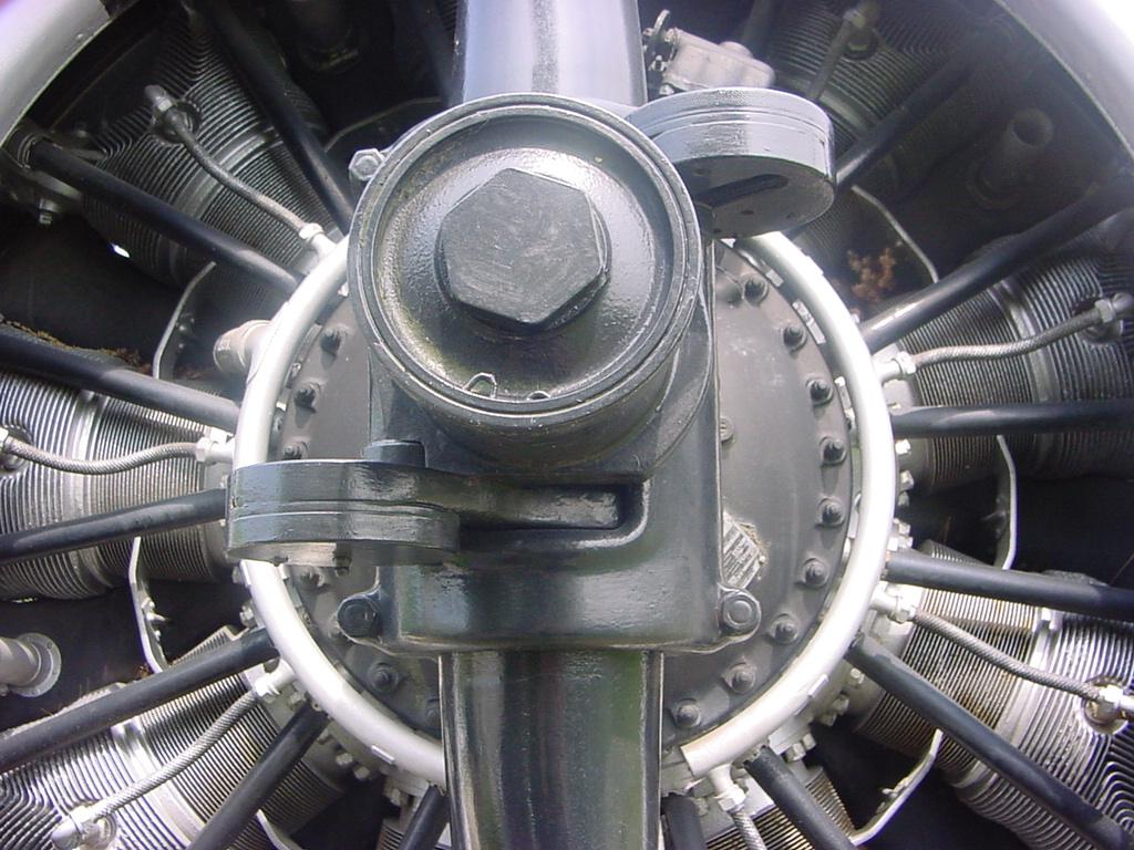 Propeller Hub (Hamilton Standard)The spinner have had been lost, however, it was a good opportunity to observe the hub of the variable-pitch propeller system. (This explanation is probably incorrect. It is said that the spinner was not installed on the hub at JASDF.)Radial nine cylinders engine is Pratt & Whitney R-1340-AN-1. |